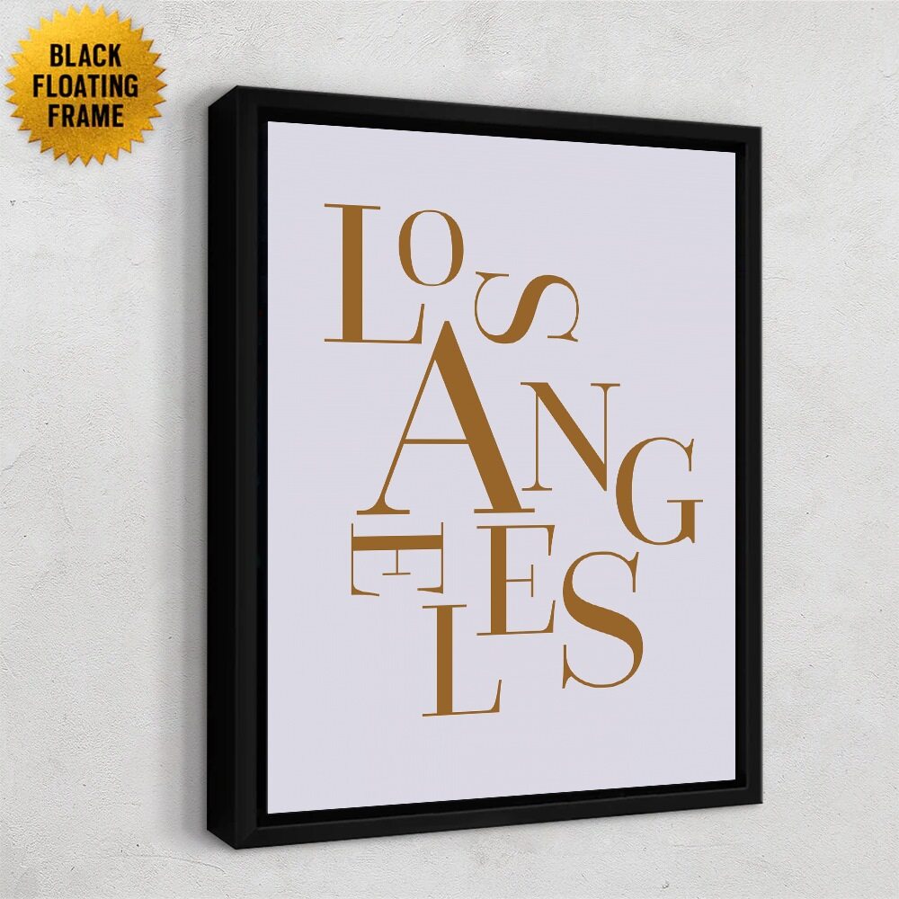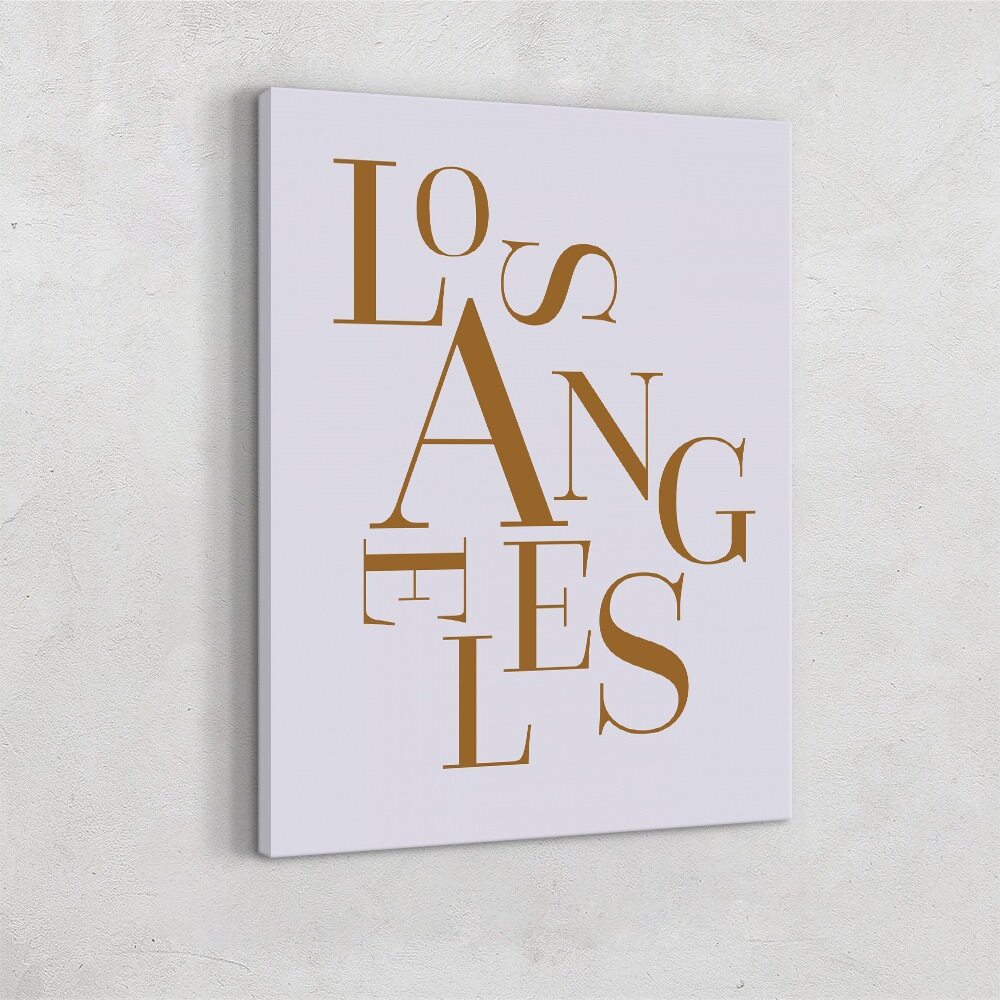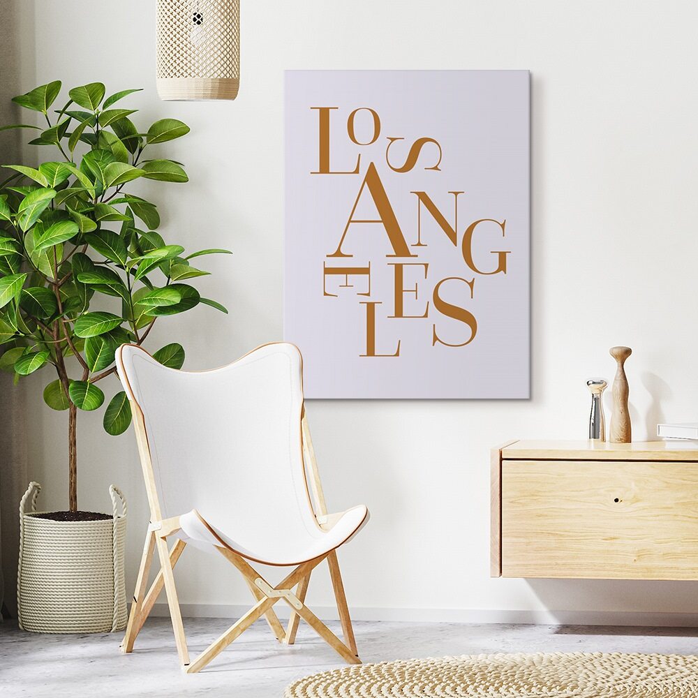 This Los Angeles typographic artwork arranges the city’s name in a striking, sculptural composition that feels both modern and editorial. Warm caramel-brown serif letters overlap and cascade across a soft lavender-gray background, giving the piece an elevated West Coast cool. It’s a great fit for gallery walls, office decor, or any space that could use a stylish nod to LA’s creative energy.